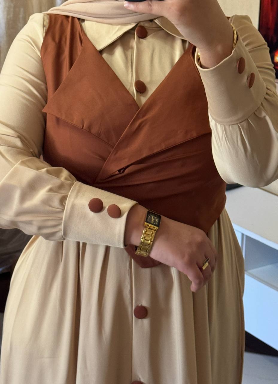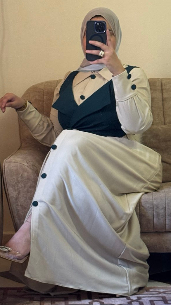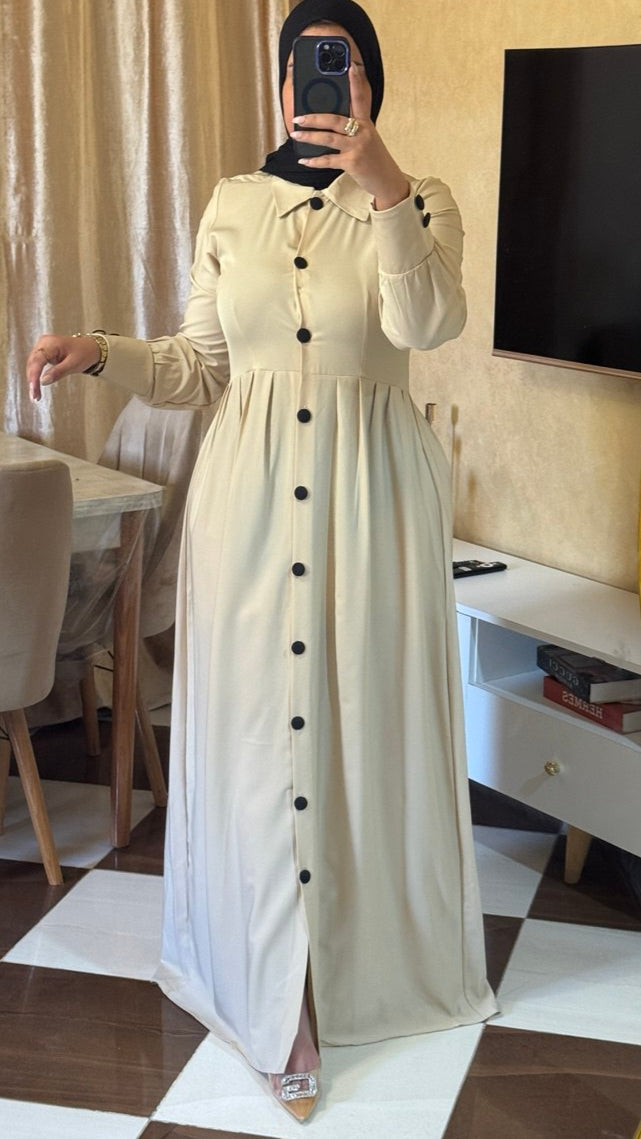 “اللون البيج الهادئ يضفي لمسة راقية، مع أزرار ظاهرة تضيف لمسة عصرية وأنيقة.